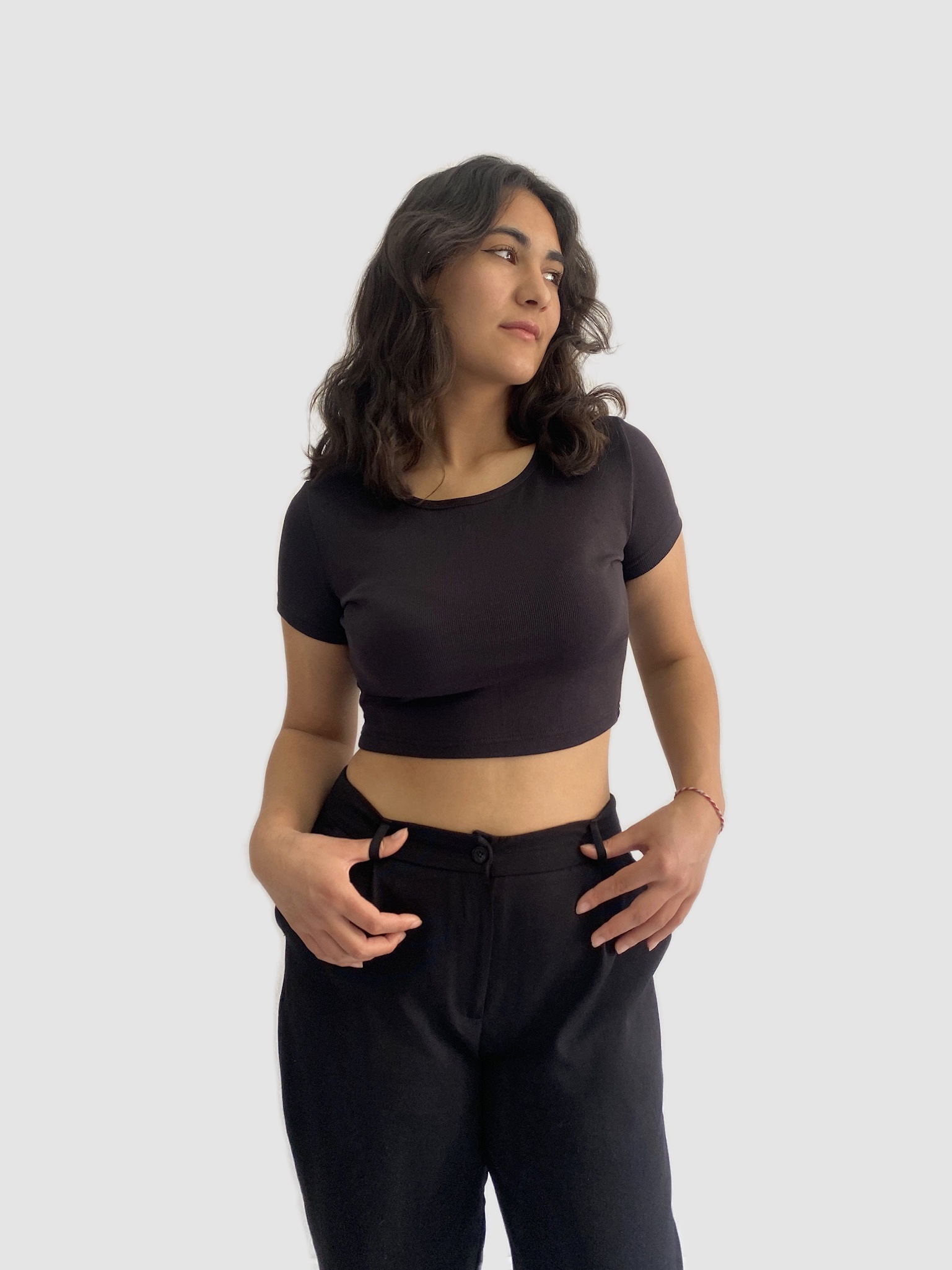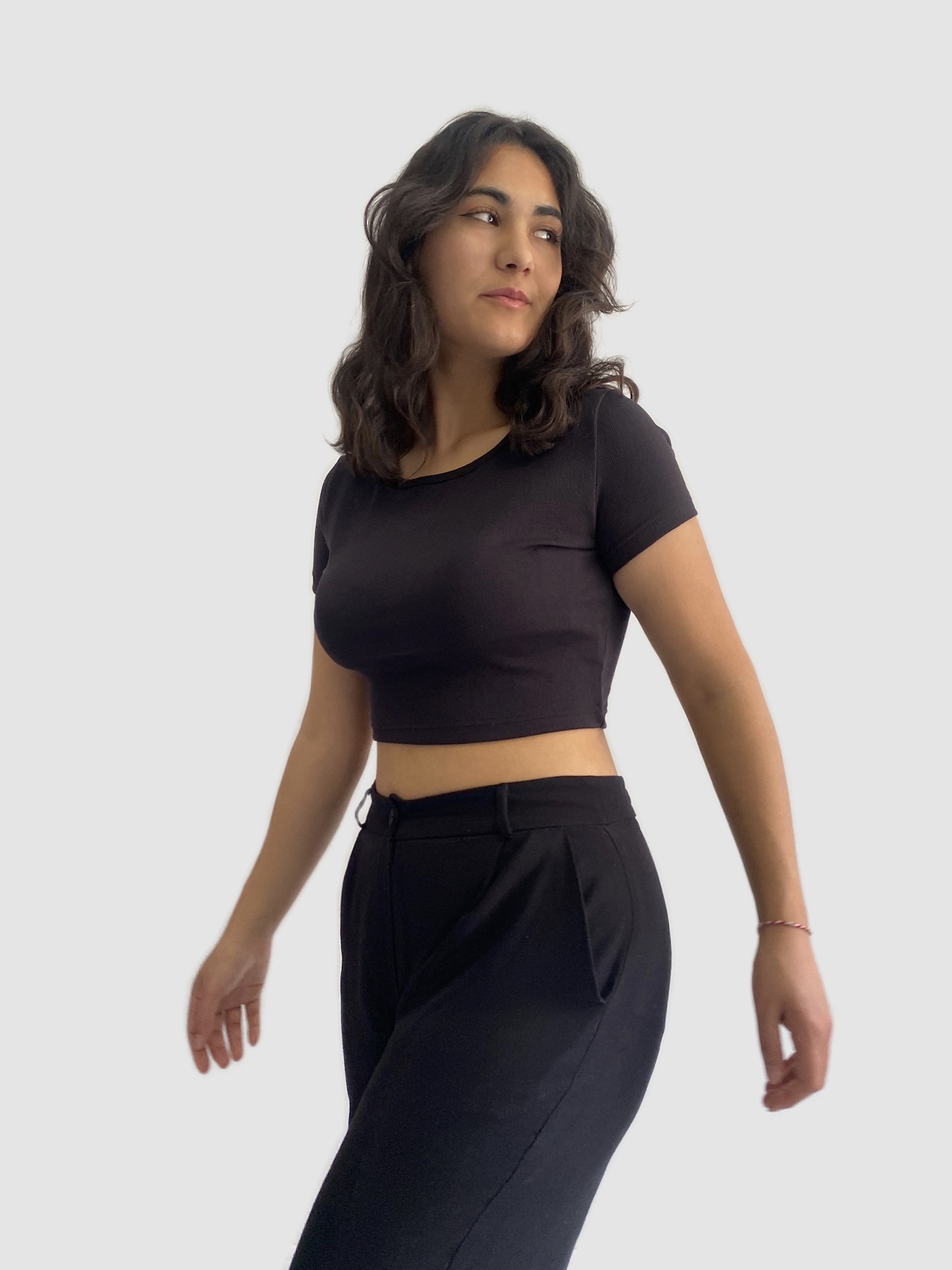 KISA KOLLU BASIC SİYAH CROP BLUZ