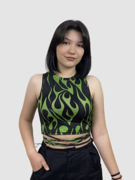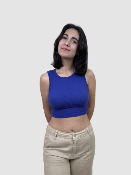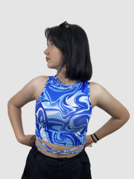 Bel Dolamalı Saks Mavisi Crop Bluz